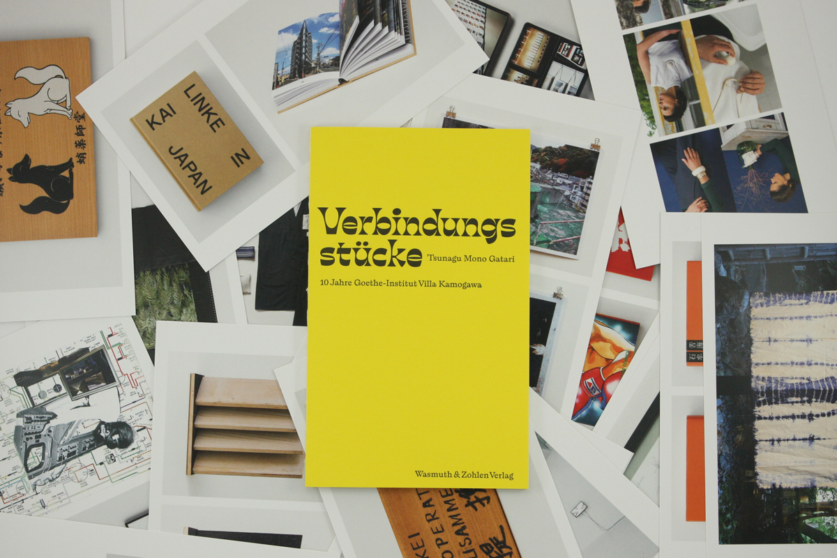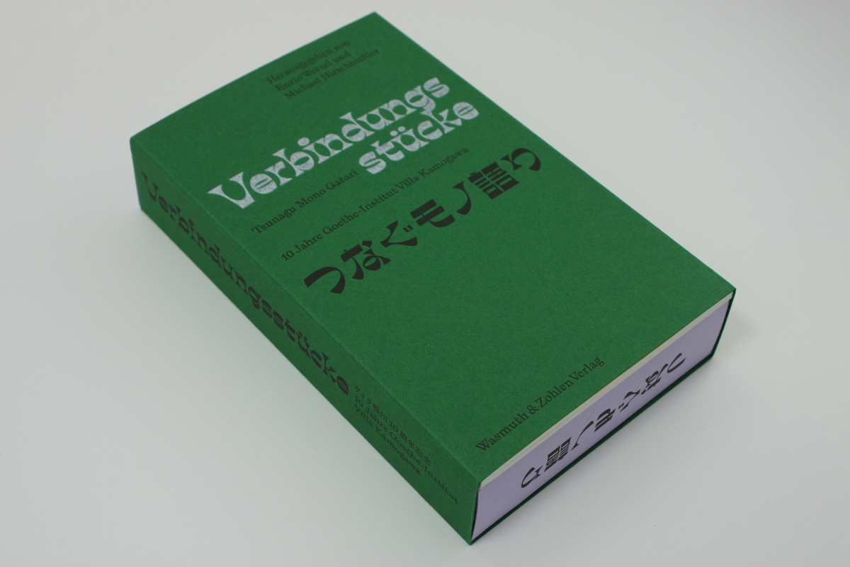 Tsunagu Mono Gatari / Verbindungsstücke is a bilingual art catalogue published in celebration of the ten-year anniversary of the Goethe-Institut Villa Kamogawa artist residency program in Kyoto. This peculiar publication features works by 73 artists, each printed on an individual card, as well as a 60-page booklet, all held together within a double sleeve. Unlike many other bilingual publications, Tsunagu Mono Gatari / Verbindungsstücke holds both languages (German and Japanese) in the same regard. In other words, there is no ‘leading’ language but instead the design highlights the cooperative nature of the project.