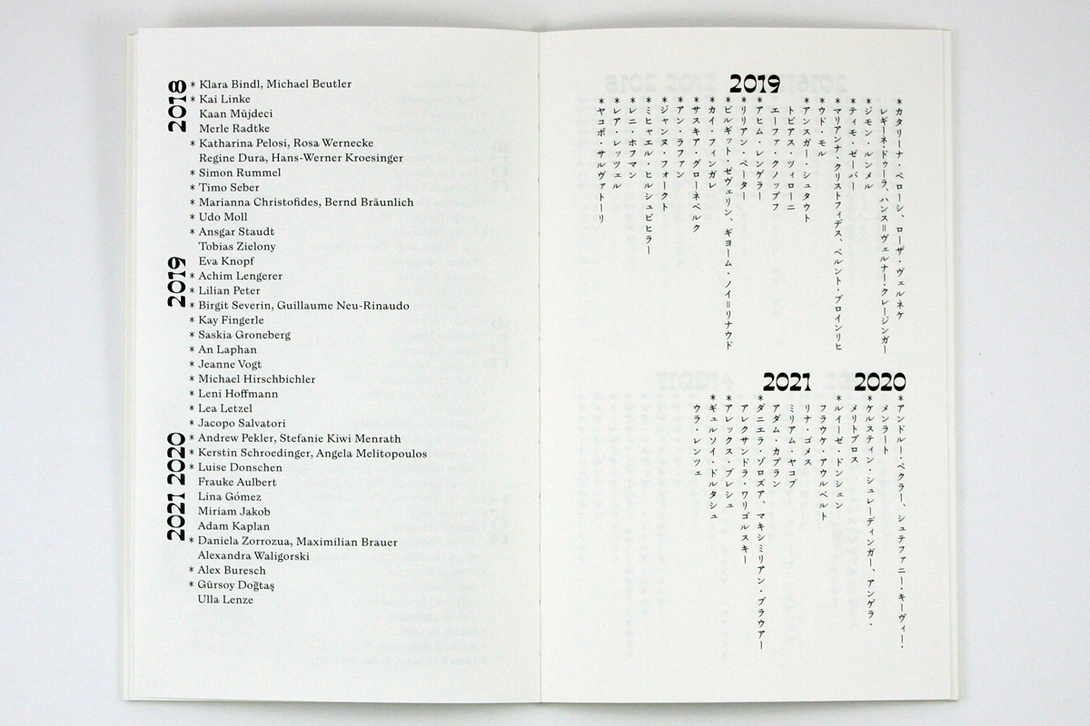 Typographers Toshiya Izumo and Ferdinand Ulrich developed the multi-script design by embracing the various directions in which text can be read; top to bottom, left to right, and so on. As a result, the two languages typographically complement one another in a project that has already been recognised by several design awards. Aptly titled ‘connecting pieces’ (German: verbindungsstücke, Japanese: tsunagu mono gatari) the catalogue doubles as an exhibition of sorts, for which reader can curate the artworks as they please.