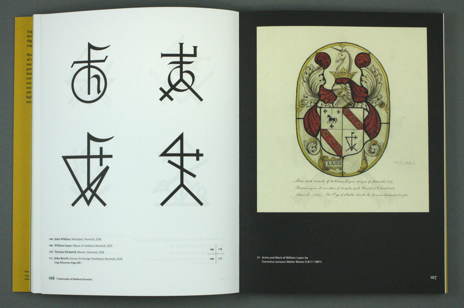 This publication highlights the fact that Norwich’s medieval marks are an early example of commercial ‘branding’ that is often overlooked by contemporary graphic design.