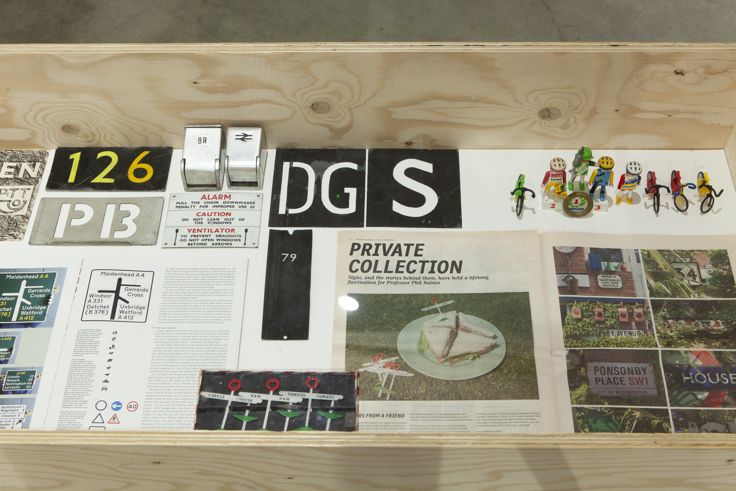 Items collected by Phil Baines for the Central Lettering Record at CSM and for home. Photograph by Jamie Johnson.