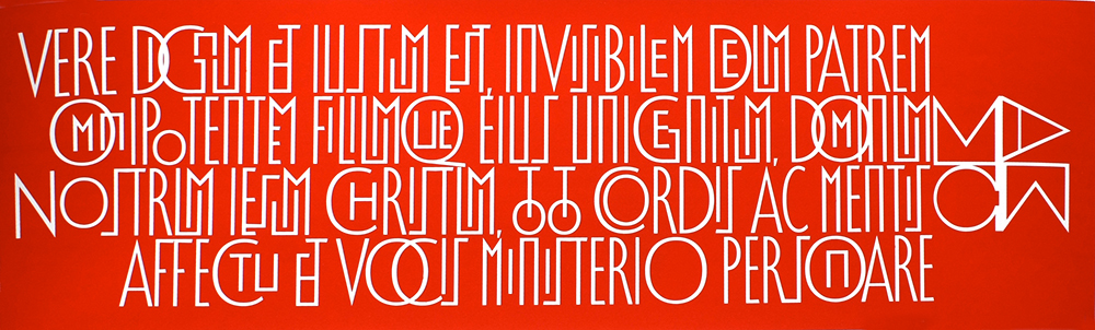 But it is the Paschal candles that serve as his most successful combination of tradition and innovation. He designed and printed the wrappers to send as gifts to friends and those who had gone on to complete their seminary training. They hang, red, black, gold and waxy white, glorious three-dimensional objects. In these he achieved his own version of Kurt Schwitters ‘i’: drawing on the past, but also fresh and personal. This is unquestionably typography as art.