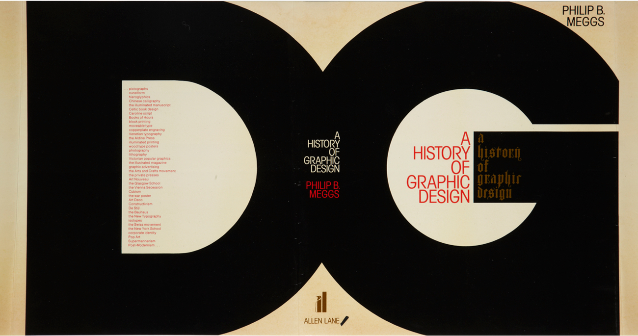 Cinamon’s cover design for the first British edition of Philip B. Meggs’s A History of Graphic Design, 1986.