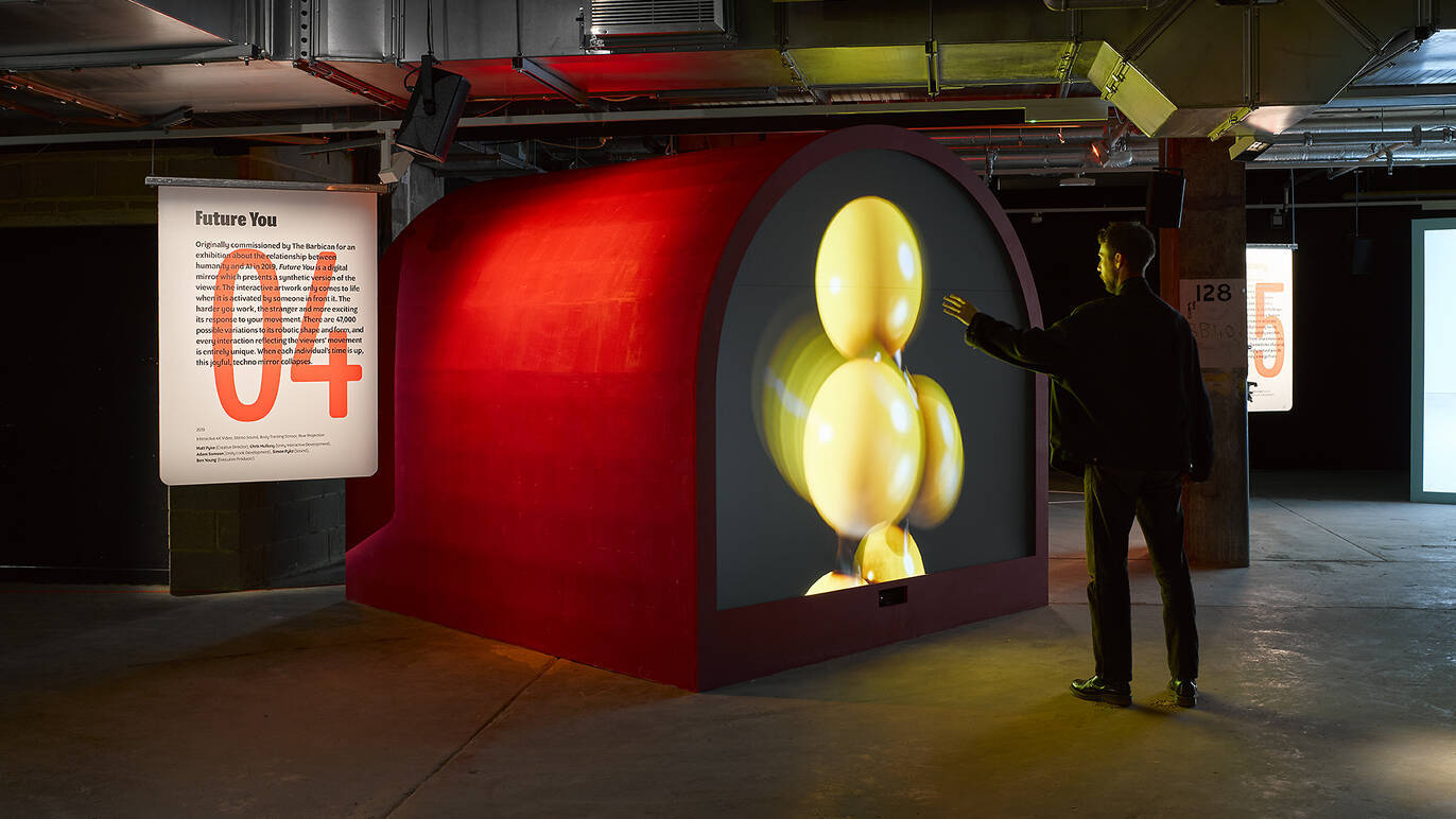 View from the exhibition featuring Future You (2019), a motion-capture artwork reflecting your future self.