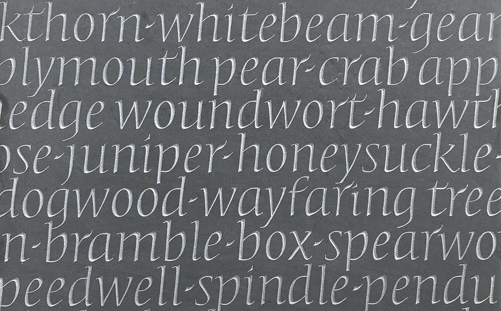 Both Kindersley and Cook have a long association with the Lettering Arts Trust, the only organisation dedicated to preserving the craft of letter-cutting. Thanks to the work of the Trust, letter-carving has recently been removed from the Heritage Crafts Association ‘red list’ of endangered crafts. The Trust focuses on three things: the ‘Memorials by Artists’ service helps connect commissioning clients with the right artist; the Trust provides training and support for aspiring carvers; and it promotes the craft of letter-carving through exhibitions and other activities throughout the UK.