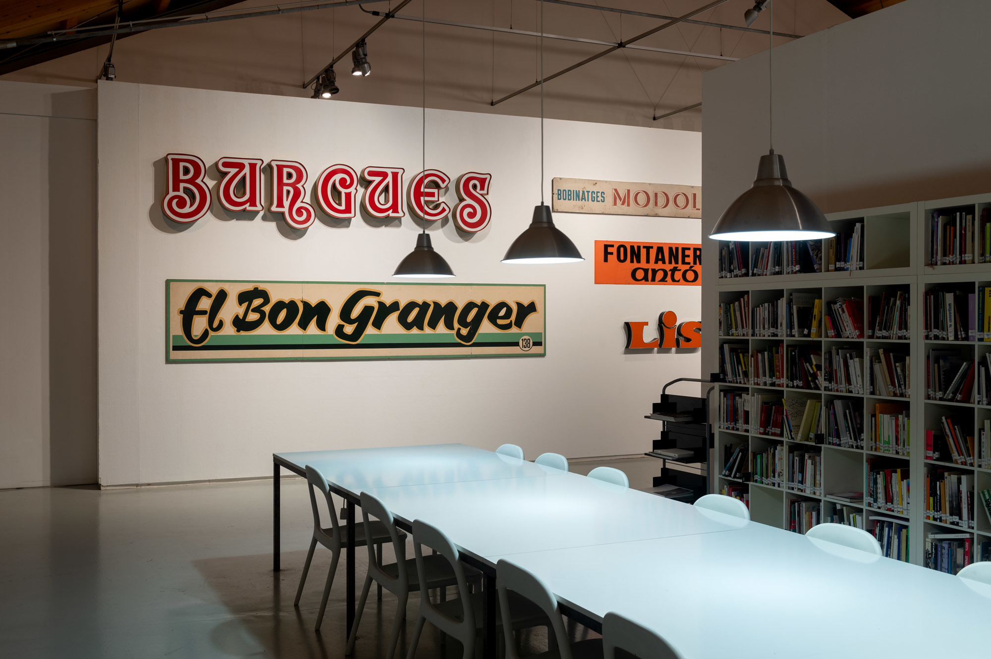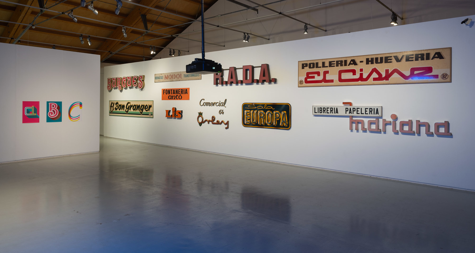 The exhibition features ten signs, some of which correspond to establishments that are still going, and a video showing the process of ‘rescuing’ and transferring these signs to the exhibition space. We also find different pieces created ad hoc, such as the neon light of ‘Invisible’; the letters ‘ABC’ created by Laura Meseguer; and a text by Mariona Lladonosa and Pau Llop set in some of Meseguer’s own typefaces.