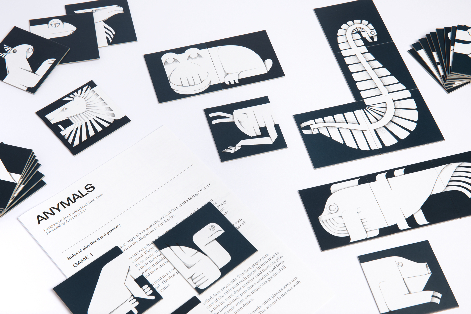 In reproducing these games the intention from the outset was to remain as faithful to the originals as possible, in the design of all the elements; the cards, the packaging and the instruction sheets. The necessary first step was to see if any original artwork existed. Ken’s son Ben Garland put me in touch with Colin Bailey, who worked with Ken and has been responsible for organising his archive since Ken’s passing in 2021. It was Colin who invaluably located the original analogue artwork for Anymals, which was subsequently photographed, and from which I was able to produce digital files and reconstruct the game. No artwork existed for the Connect game, so it had to be recreated from original copies of the game, from which I also redrew the stencil lettering of the name.