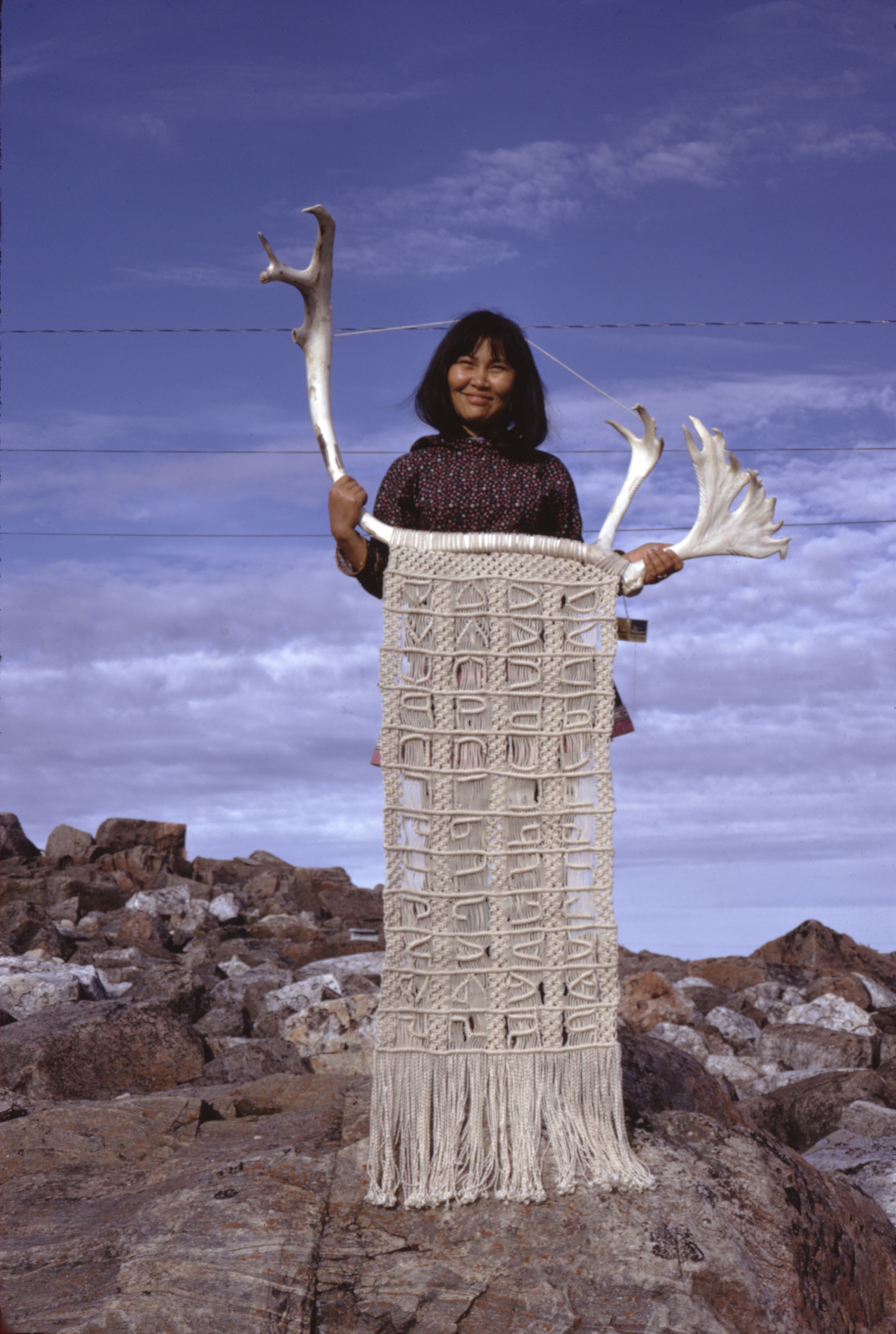 A traditional Syllabics macrame created by members of the Nattilik community in Western Nunavut. Photo by Judy McGrath, 1977.