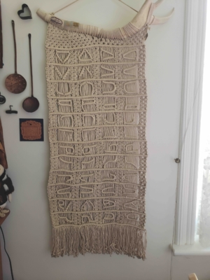 Macrame sculpture of Nattilik syllabics, created by Arnaoyok Alookee. Photo by Judy McGrath.