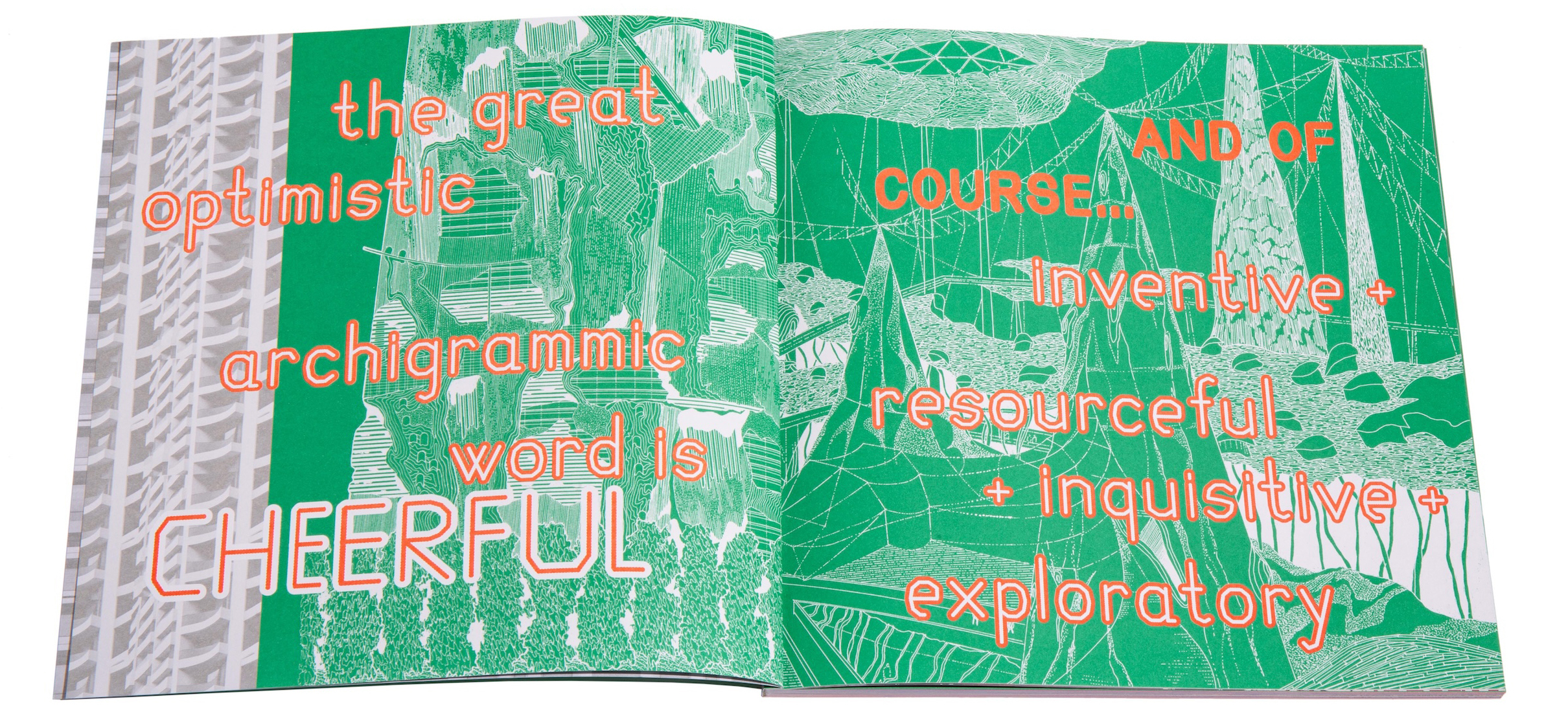 Right. A spread from the book featuring texts by the Archigram co-founder Dennis Crompton (1935-2025) and professor of architecture Todd Gannon.