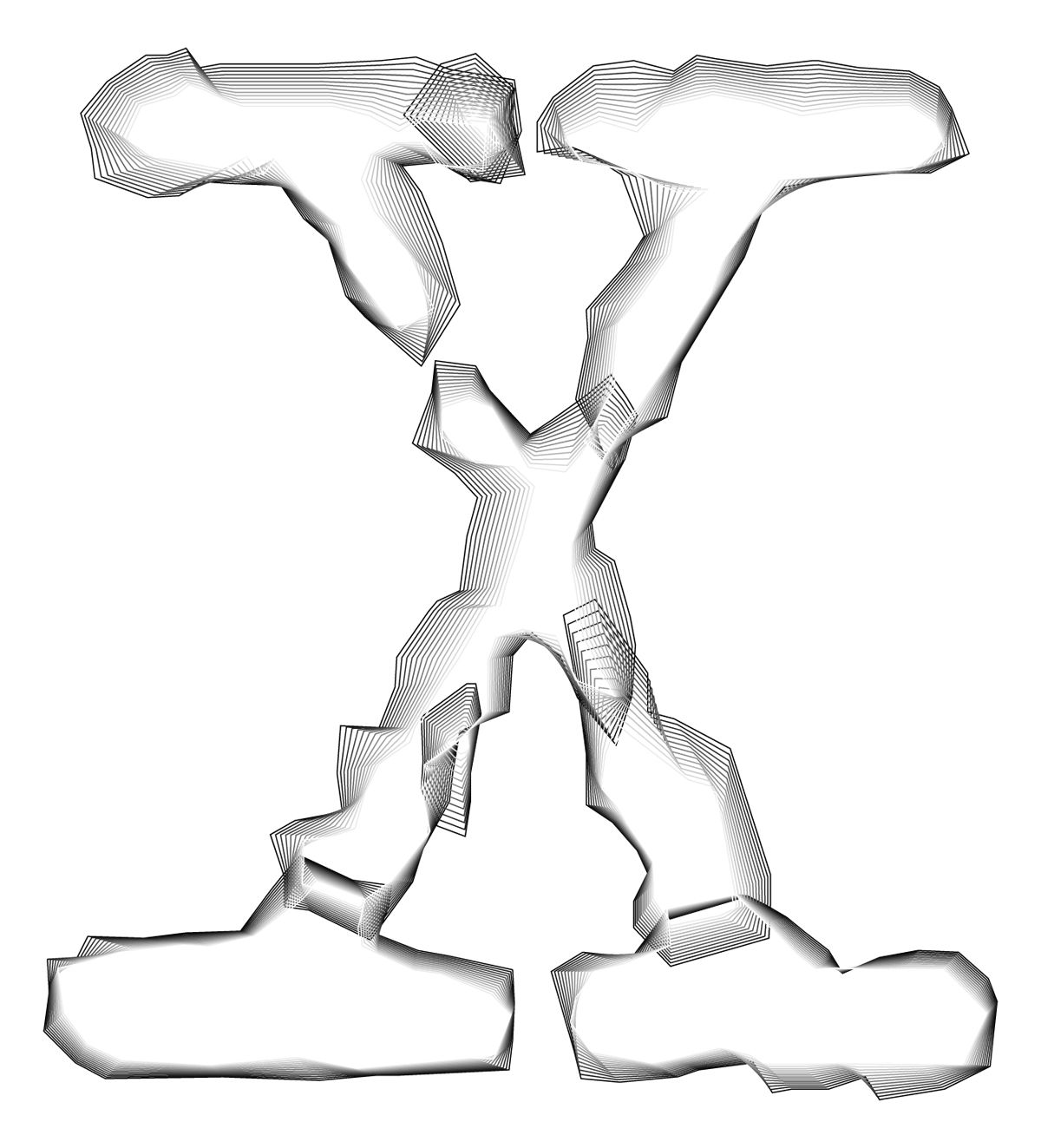 NCND: diagram showing the interpolation stages of the letter ‘X’.
