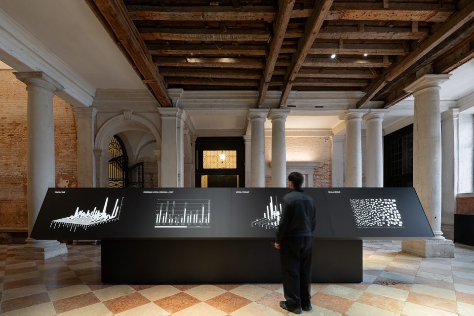 This exhibition project, conceived by AMO/OMA (the studio founded by Rem Koolhaas) for the Venetian venue of Ca' Corner della Regina, analyses the visual communication of data as a powerful device for constructing meanings and as a pervasive tool for analysing, understanding and transforming the world. The aim is to promote dialogue and speculative reflection on the relationship between human intelligence, scientific and cultural phenomena and the creation and dissemination of knowledge.