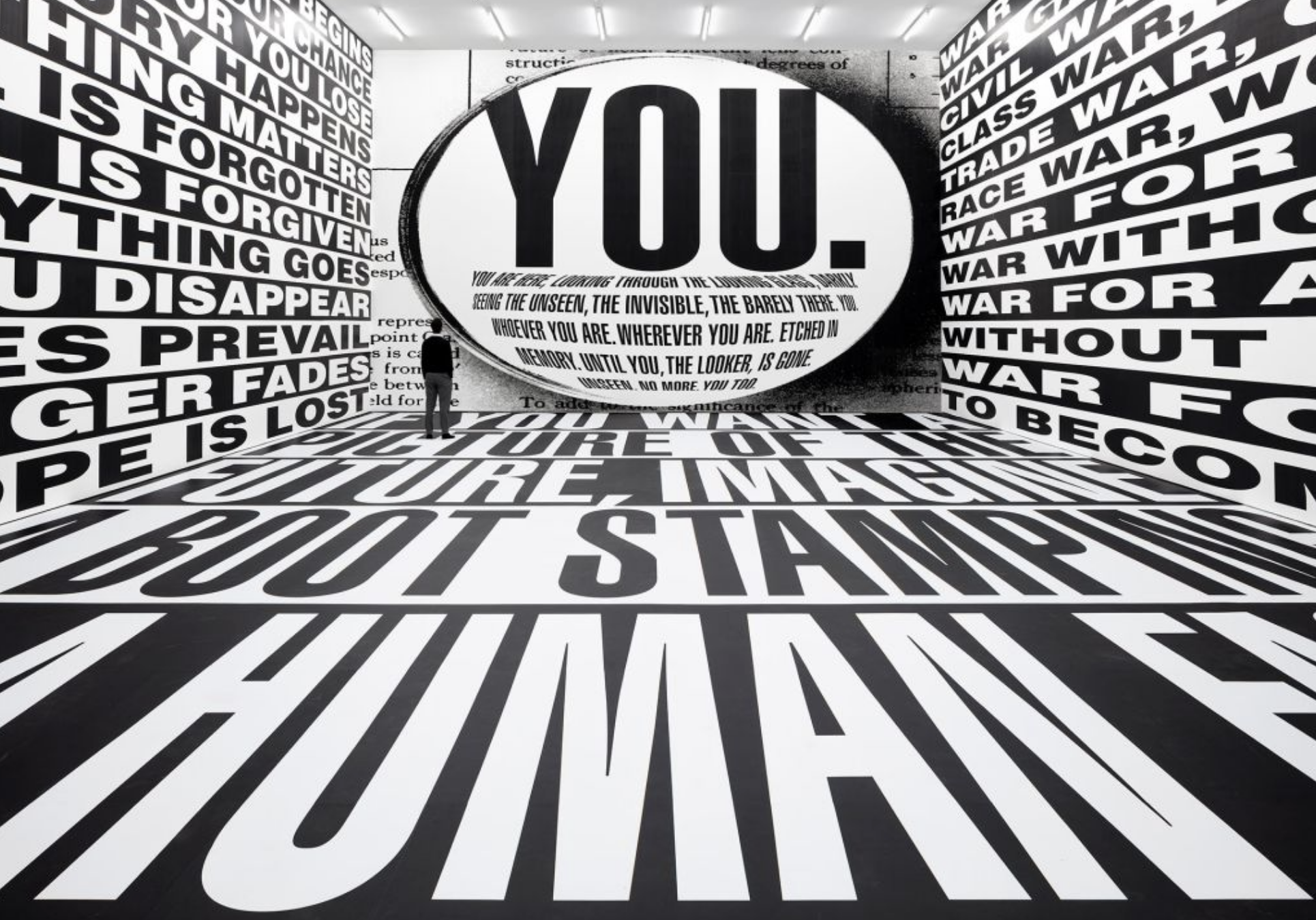 Above: Barbara Kruger, Untitled (Questions), 1990/2018, on view October 20, 2018–November 2020 at The Geffen Contemporary at MOCA, photo by Elon Schoenholz.