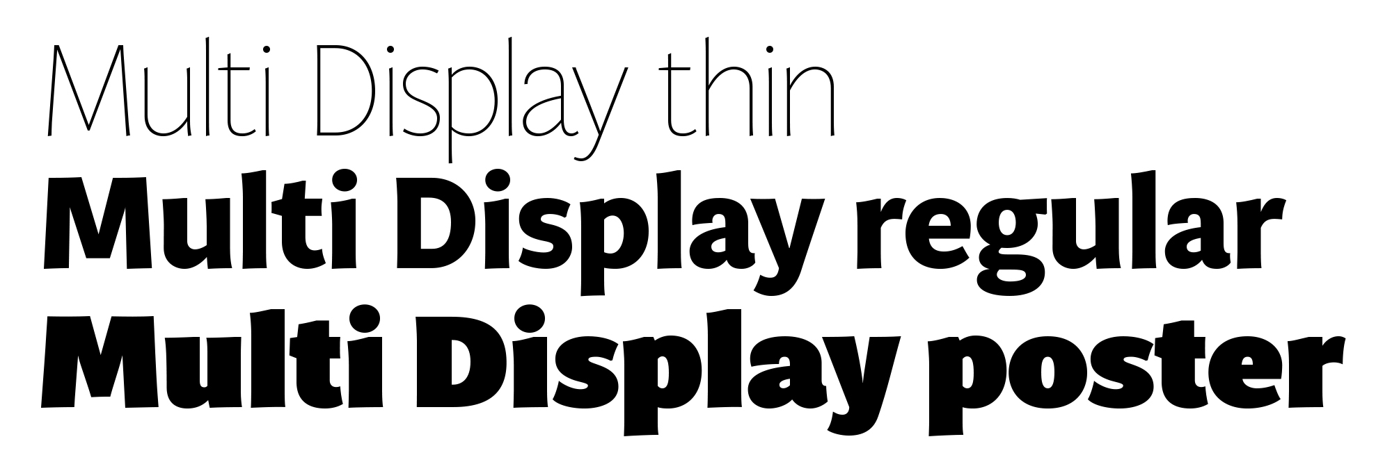 Mendo was convinced that Meseguer was the right designer to visualise those ideas. She designed two series: Multi Text (two weights, roman and italic) and Multi Headline (six weights, roman). After five years of exclusive use by the client, Meseguer’s foundry could introduce this font family to its own catalogue. ‘I considerably expanded the character set and the family, and implemented a few modifications. Multi Text now comprises three weights (each roman and italic); the Headline was renamed Multi Display: seven weights, all in roman and italic.’