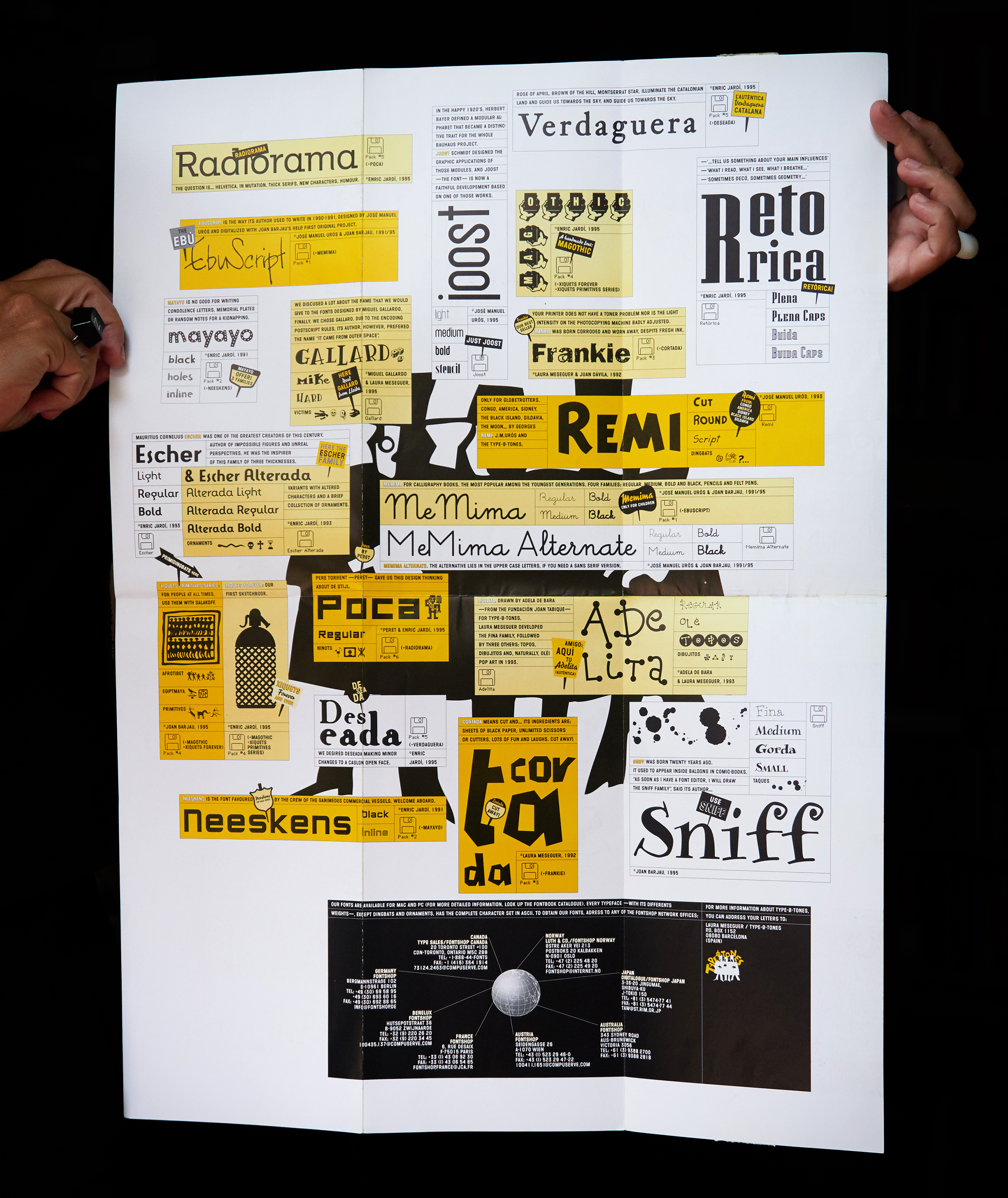 Type-Ø-Tones remained a secondary activity for its members. But meanwhile they had produced dozens of fonts and type families, as well as attractive brochures. They received international attention through the FontShop catalogues. From the same angle came the online typographic magazine TypoRed, launched in the early 2000s in collaboration with three colleagues: Joan Barjau, Allan Daastrup and Mela Dávila.