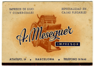 The business card of Meseguer’s grandfather Antonio Meseguer, Impresor (printer), ca. 1950s.