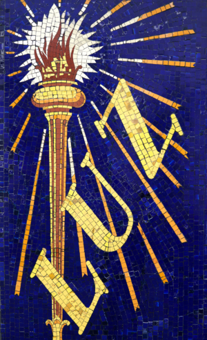Mosaic lettering for Farmacia Laboratorio, 1925, by Lluís Brú i Salelles (who also did ‘Luz’, above). The pharmacy closed in 1987 and is now a plant shop.