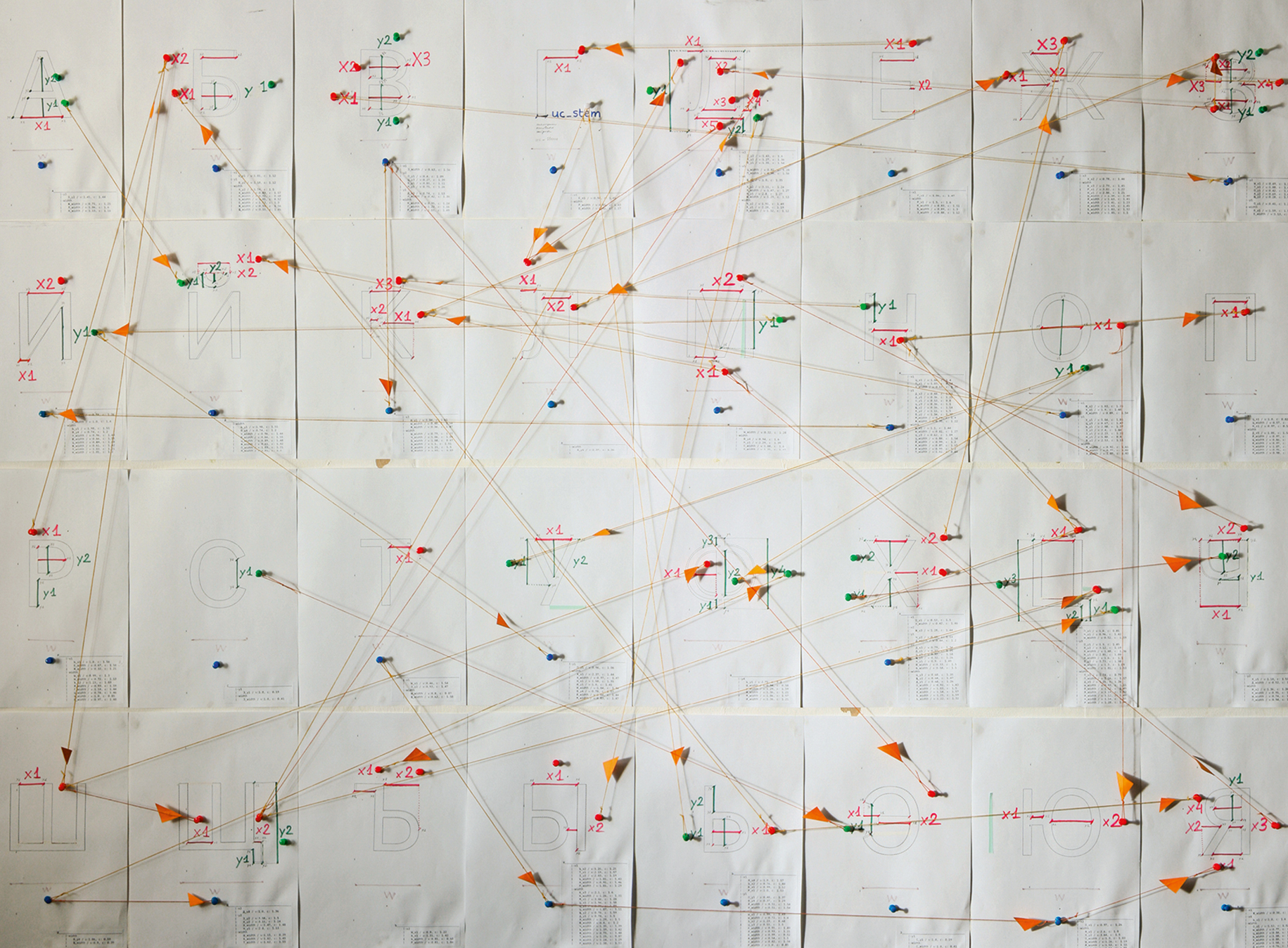 Wooden Cyrillic typeface (ca. 1929), a diploma project by Vladimir Favorsky’s student Boris Grosevsky, shown in the presentation given by Rustam Gabbasov and Eugene Yukechev.