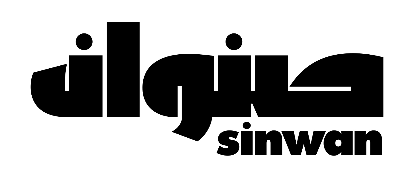 Logo design in Arabic by Yara Khoury Nammour for the Sinwan gift shop, Saudi Arabia 2005. Top. A tapestry by Nja Mahdaoui, which demonstrates the rhythm of Arabic letters, 2012.