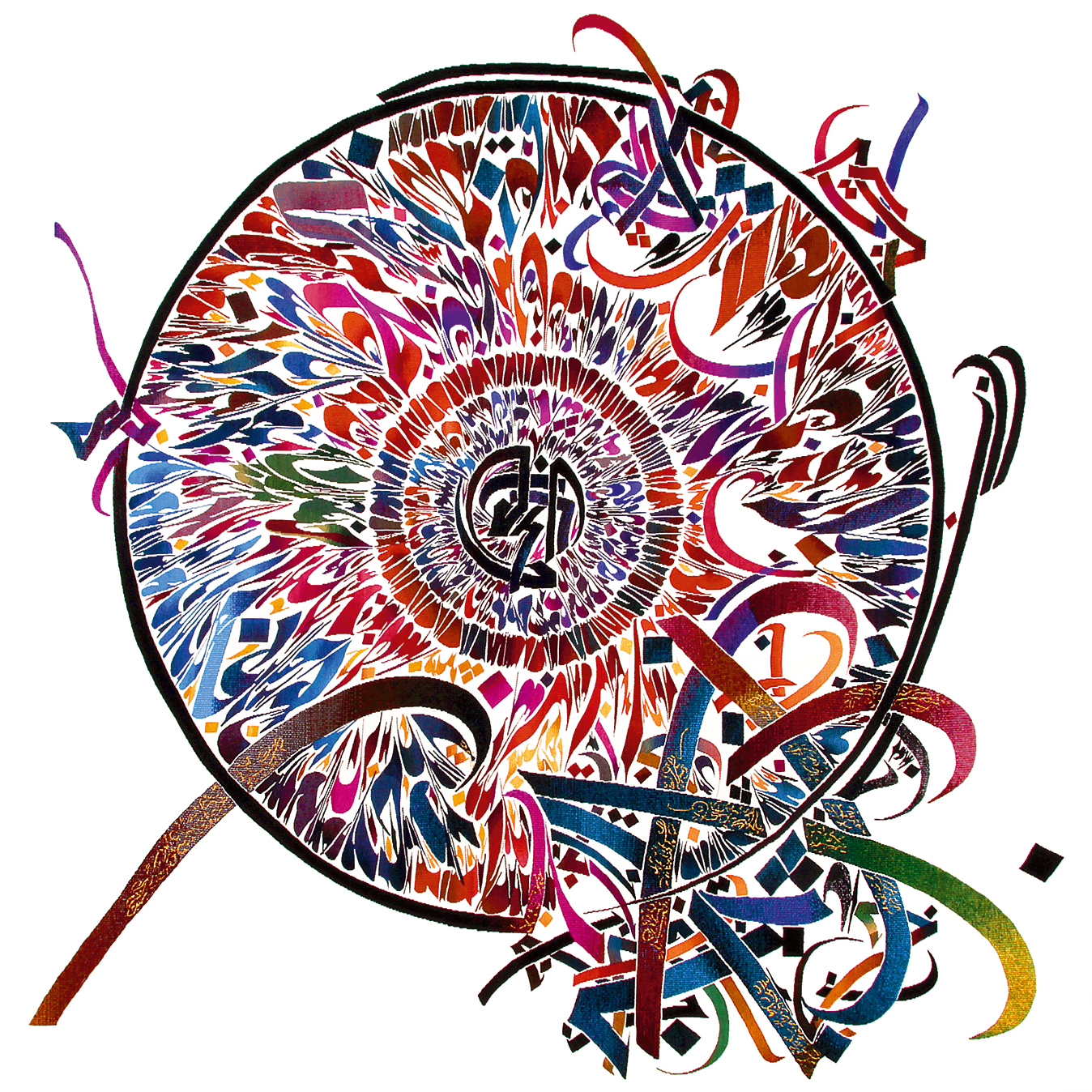 Nja Mahdaoui, a distinguished ‘choreographer of letters’, was first up, presenting an astonishing array of craft. From stained glass windows to tapestries, from aircraft tails to three-dimensional sculptures, this work is proof that letterforms can be used to express artistic sentiment as well as communicate meaning. Mahdaoui said: ‘I abstracted, I removed all the meaning and I left the rhythm of the letter.’ The artist’s instinct for coaxing out the essence of words was evident throughout his conversation with Shehab. Mahdaoui said that explorations of the self should not close people off – identity should be used to liberate ourselves from division, to connect and converse with other cultures. ‘Arabic calligraphy’, he said, ‘belongs to everybody.’