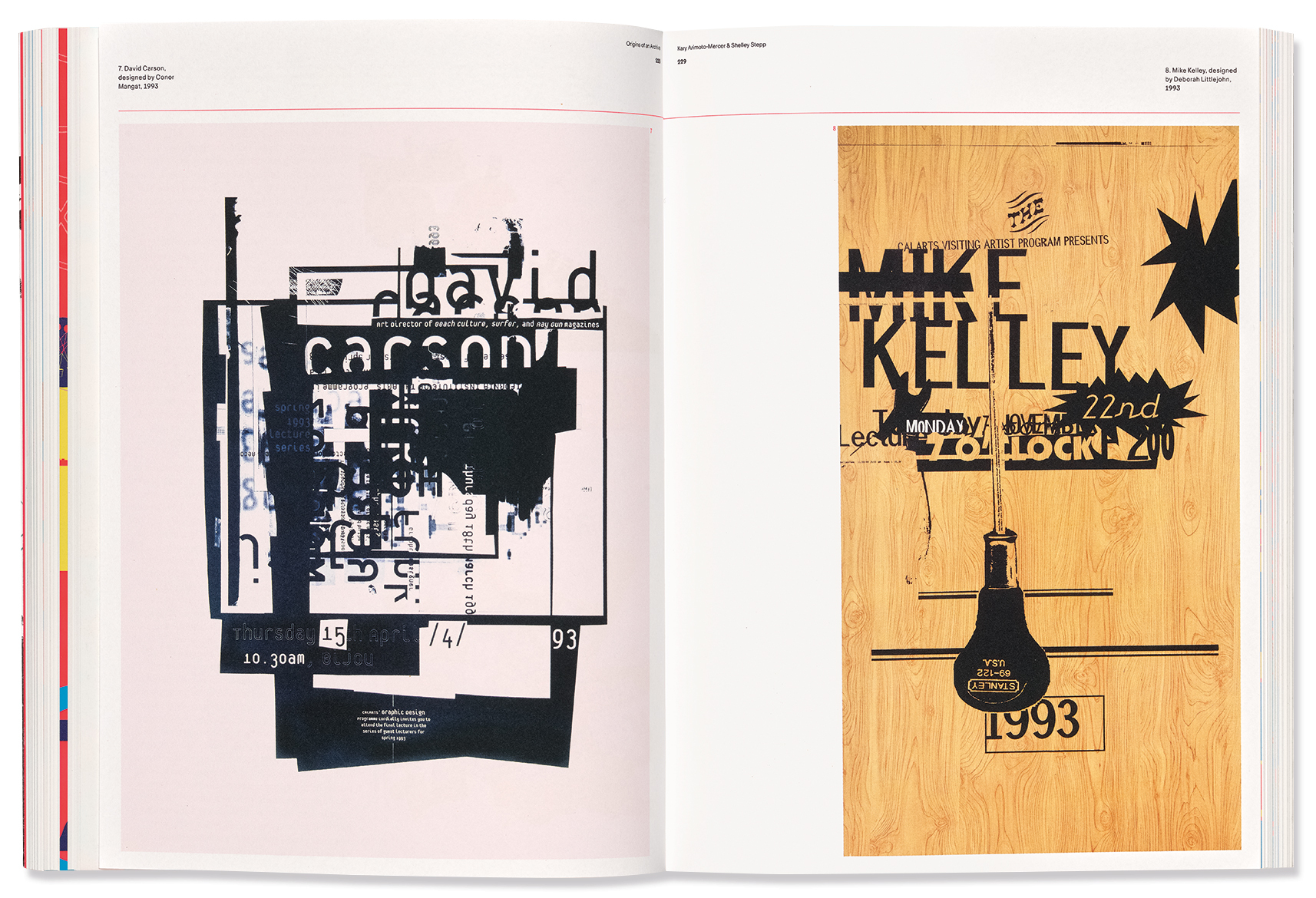 Behind these experiments lay an embrace of postmodernism that set the programme apart. As CalArts School of Arts member of staff Lorraine Wild recalls, the staff expected the posters to reflect contemporary ideas that underpinned the teaching. There was no fiercer proponent of postmodern design than her colleague Jeffery Keedy. In one of several revealing dialogues, graphic designer and lecturer Jon Sueda recalls Keedy questioning students about their allegiances: ‘If you said you were a Modernist it was terrible, but if you said you were a postmodernist he would say “no you’re not!”’