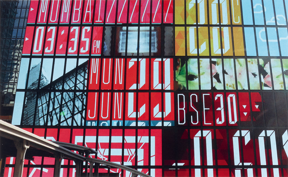 Digital images on the Mahanakhon Cube, a venue in Bangkok, design by Pentagram partner Eddie Opara, 2018.